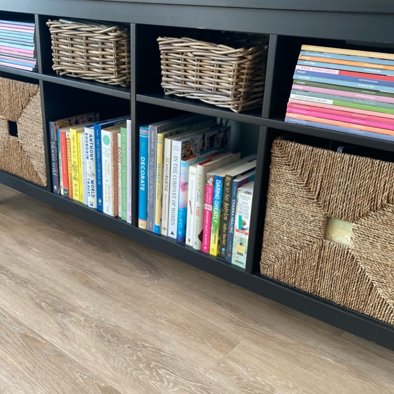 Baskets are both practical and stylish. I use woven baskets to store magazines, throws, or toys.