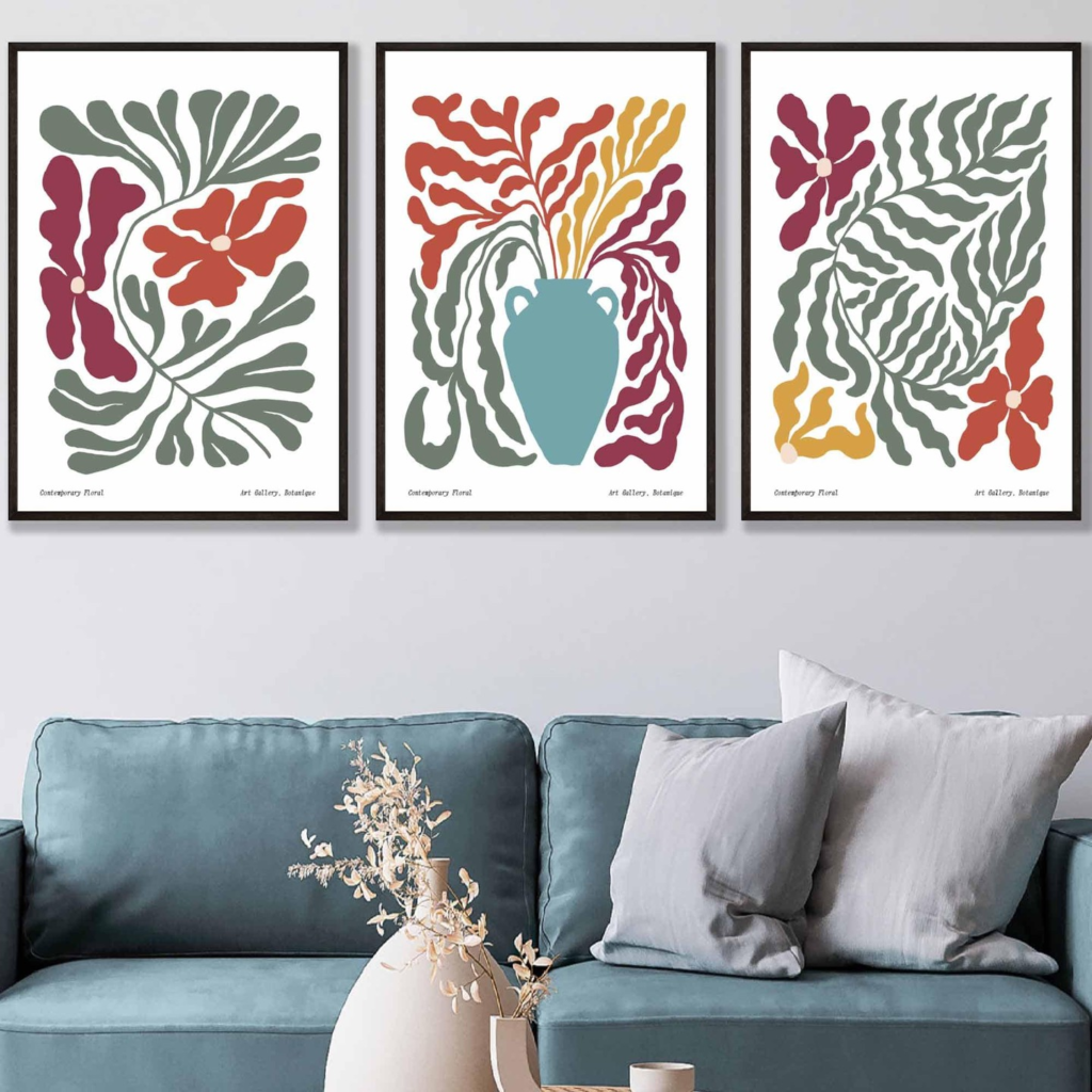 I rotate art prints based on the season. In spring, botanical or landscape prints work best. They bring in a sense of nature and calmness.