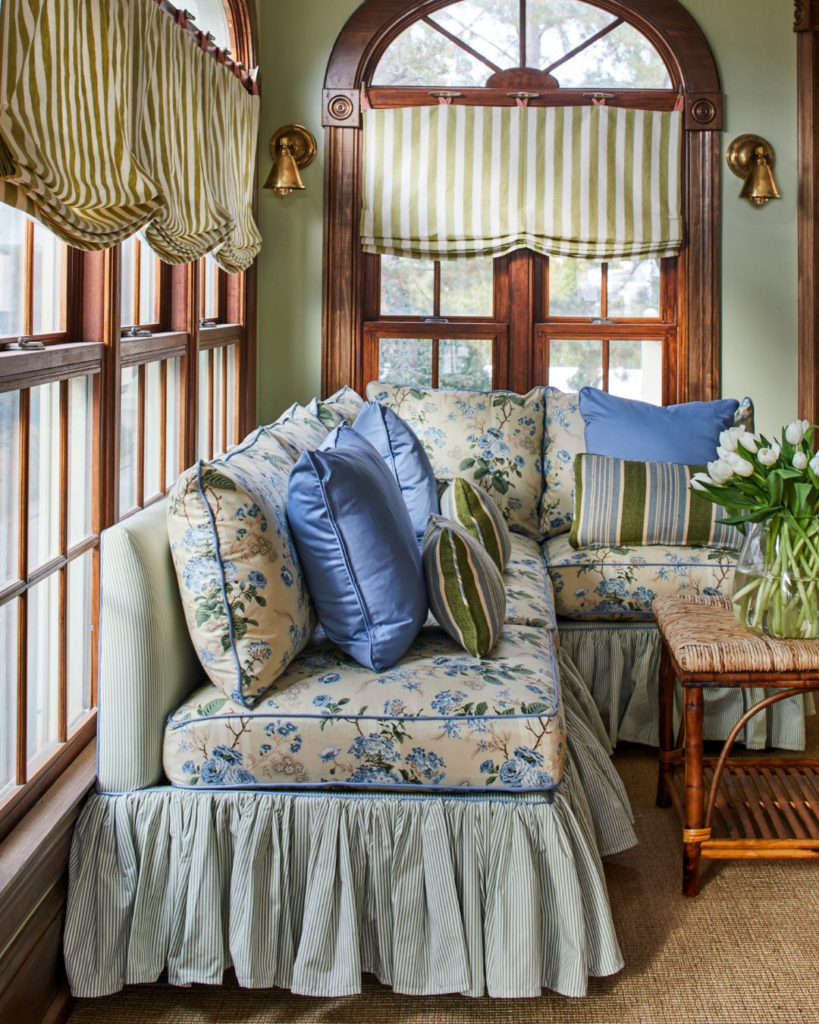 It keeps the space fun and inviting while maintaining a cohesive spring look. Playing with patterns adds personality and charm.