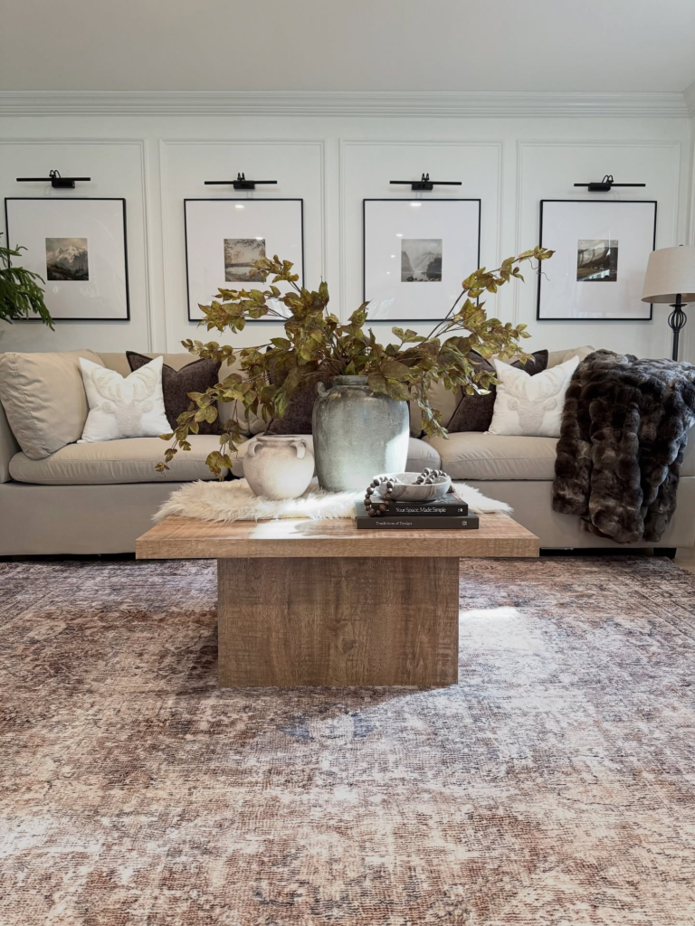 A fresh rug can redefine your living room space. This spring, I picked a light beige rug with delicate patterns. It brightens up the room and makes it feel airy.