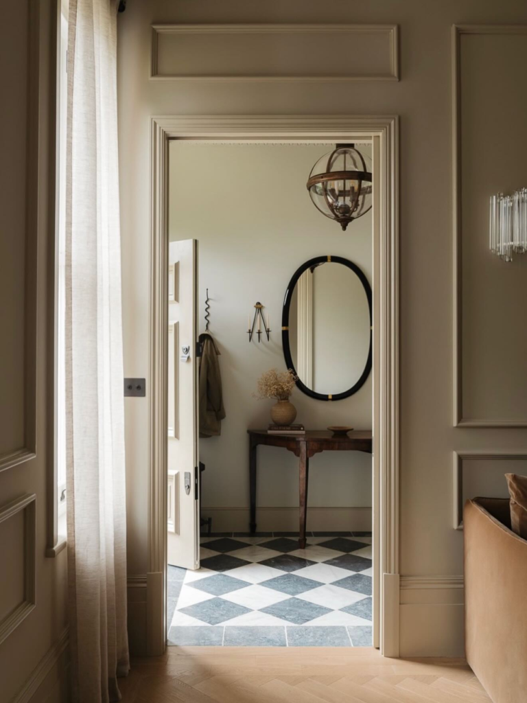 A statement mirror is one of my favorite entryway upgrades. It instantly makes the space feel larger and brighter, especially if your entry doesn’t get much natural light. I love placing a round or arched mirror above a console table because it adds softness and elegance. Plus, you get that practical last-minute outfit check before heading out. It’s beautiful and functional at the same time, which I always consider a win.