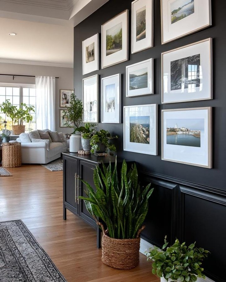 If your entry feels plain, a gallery wall can instantly bring it to life. I love mixing family photos with art prints and small decorative pieces. It adds personality and tells your story right at the entrance. You don’t need expensive art; meaningful pieces work beautifully. It’s one of the easiest ways to make your home feel truly yours.