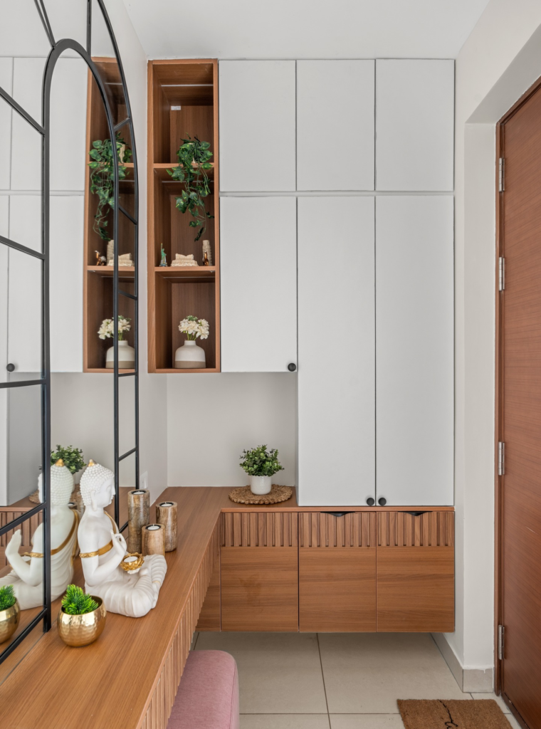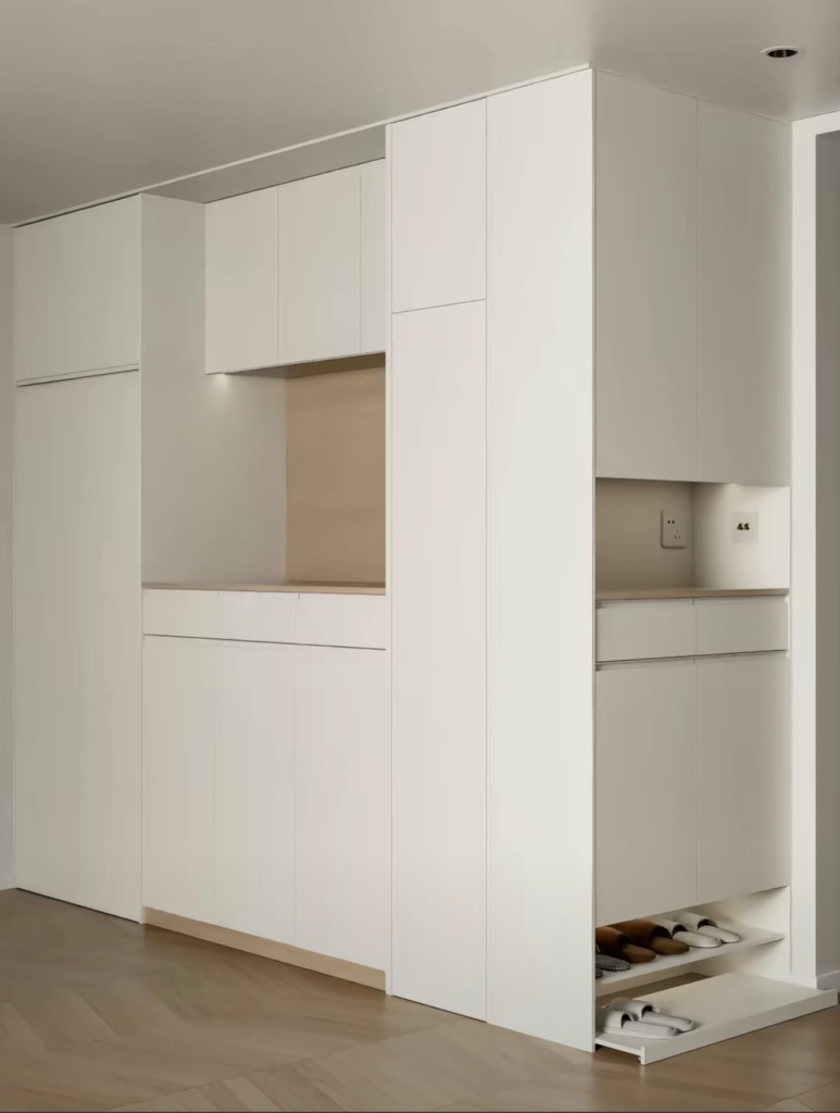 Shoes can quickly make an entryway look messy. I’ve struggled with this myself, especially during busy weeks. A closed shoe cabinet or a decorative basket keeps everything organized and out of sight. It maintains a clean look while still being functional. Trust me, hiding visual clutter makes the entire space feel more luxurious.