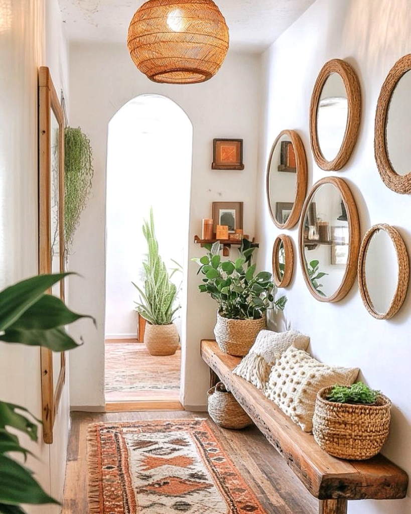 Texture makes a space feel rich and inviting. I always combine wood, metal, fabric, and greenery for depth. A woven rug with a wooden bench and soft cushion looks effortlessly styled. Layering textures makes your entry feel warm and cozy. It prevents the space from looking flat or boring.