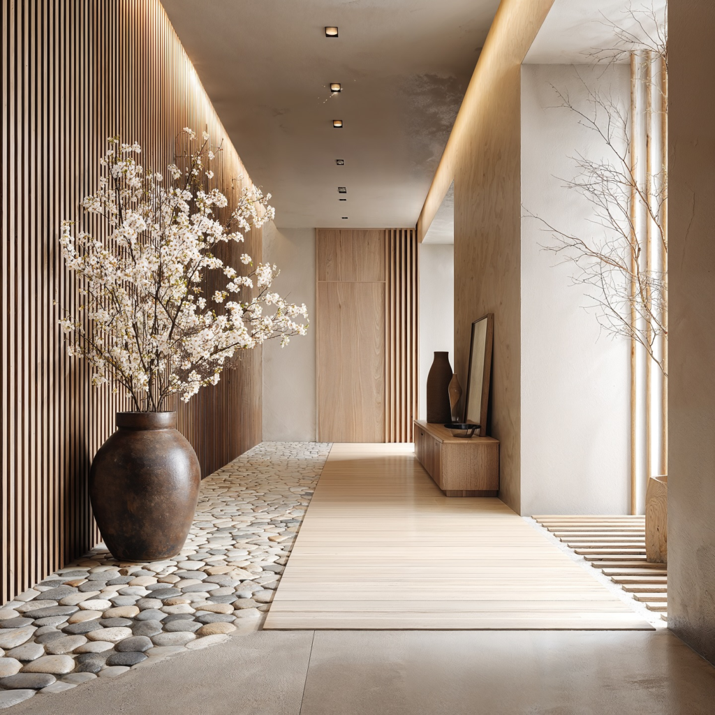 This style focuses on simplicity, balance, and calm. Low furniture, neutral colors, and clean lines create a peaceful atmosphere.