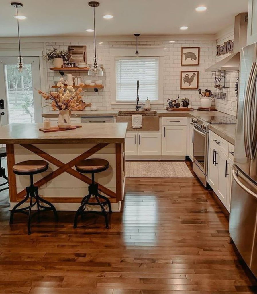 Subway tiles are simple, clean, and perfect for farmhouse kitchens. I like how they reflect light and keep the space fresh.