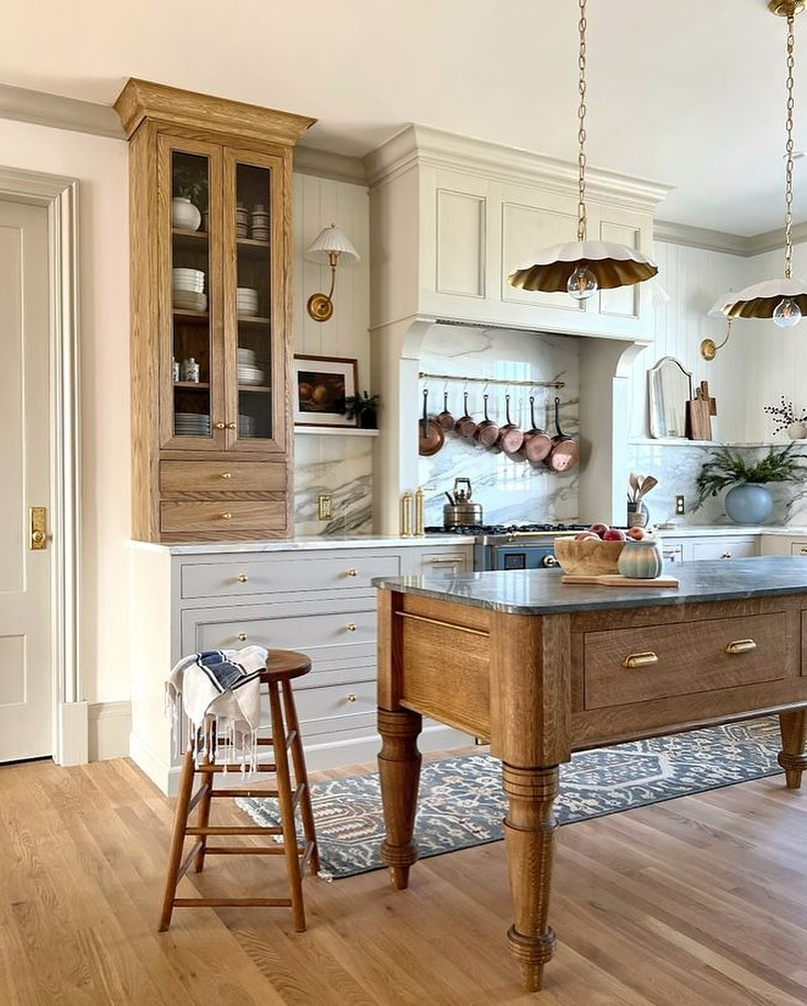 Mixing wood, metal, stone, and glass keeps the kitchen interesting. I find this makes the space feel layered and rich.