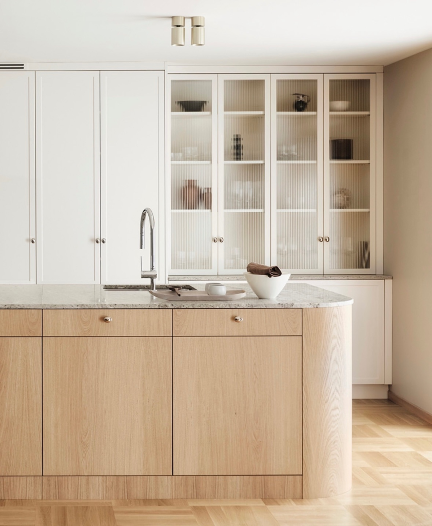 Natural textures balance out hard surfaces like tiles and metal. They also make the kitchen feel more feminine and cozy. It’s a subtle but powerful detail.