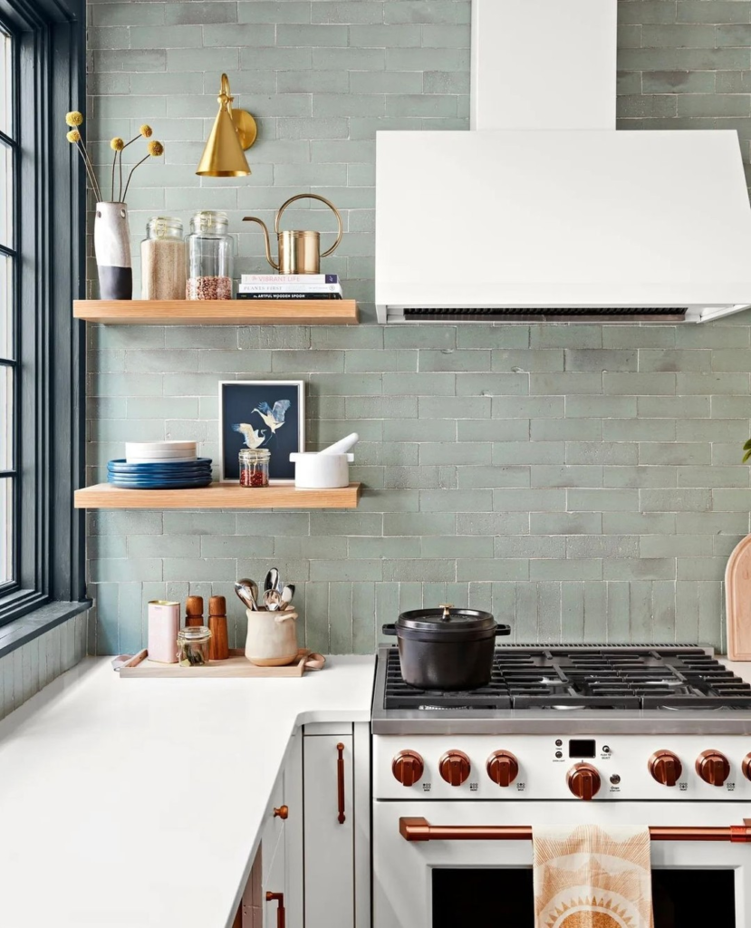 They work beautifully with wood cabinets and open shelving. I love how they reflect light and make even small kitchens feel bigger. If you want a safe but stunning option, this is it.