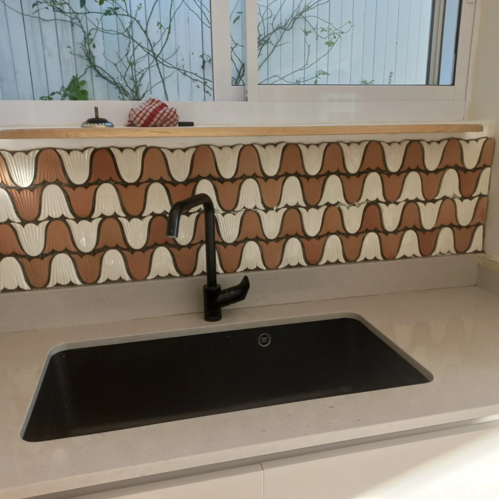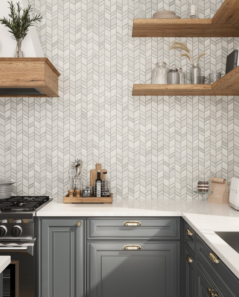 This pattern adds texture without bold color. It feels classic and elegant. I love it in neutral tones. It works beautifully with farmhouse sinks. Very timeless and refined.