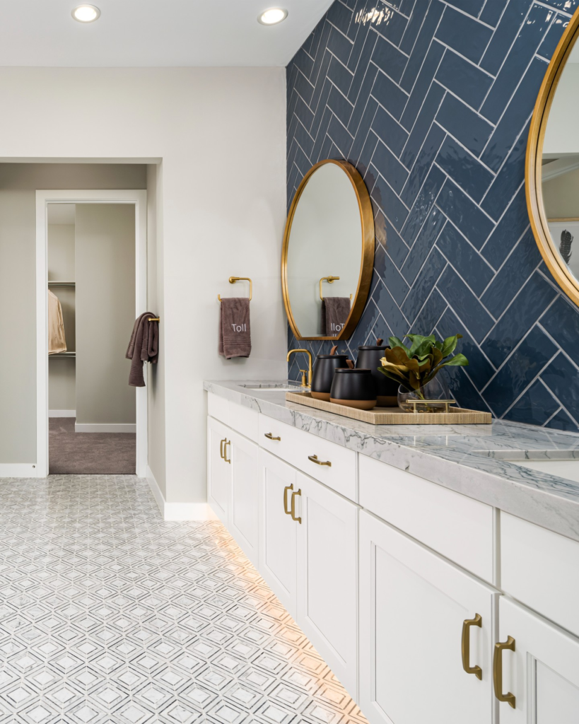 Floral tiles add softness and a romantic feel. I think this style is perfect if you love vintage or cottage decor. Soft blues, greens, and pinks work beautifully.
