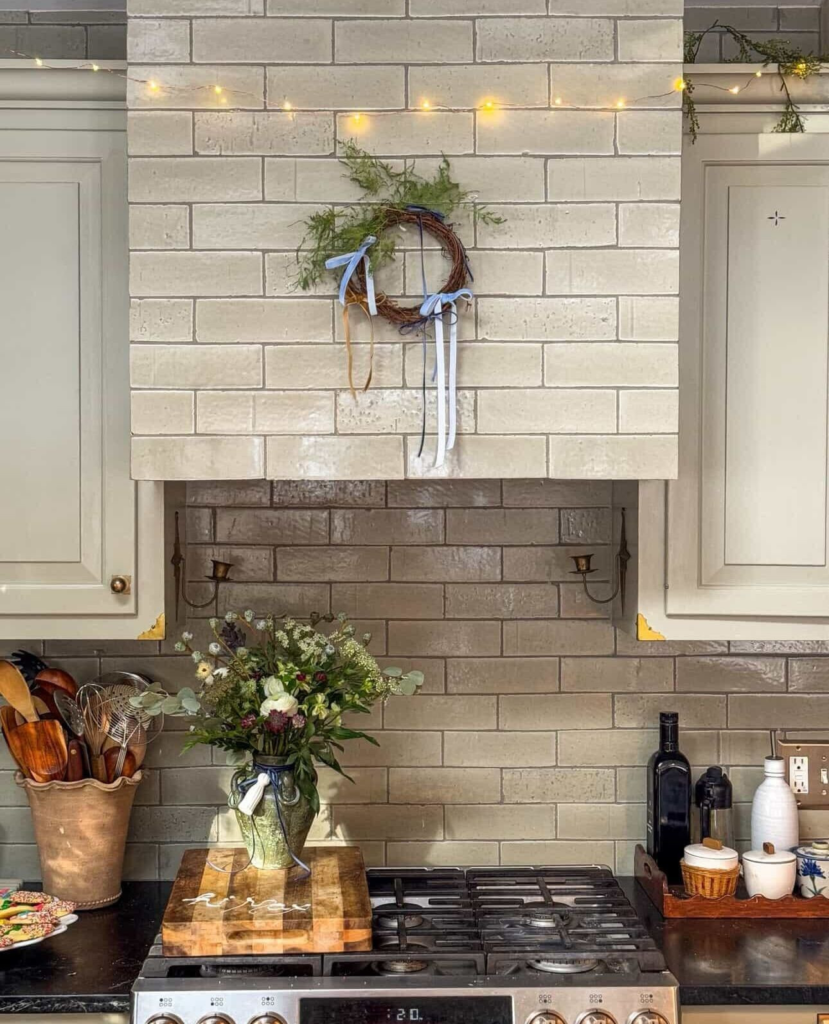 It pairs so well with wooden countertops and vintage decor. Even faux brick tiles work great if real brick feels too much. It gives your kitchen instant personality.