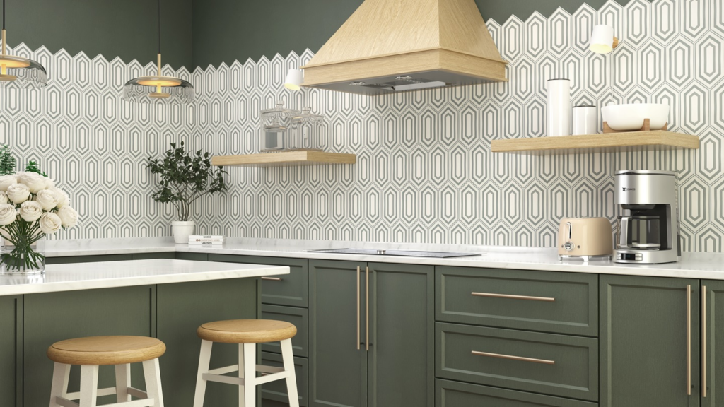 Green feels fresh and calming. I love sage and olive tones. They bring nature indoors. Perfect for relaxing kitchens. Very soothing and balanced.