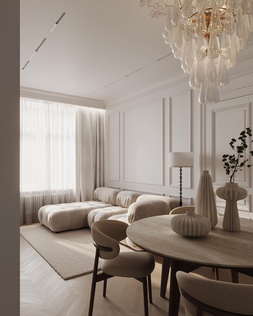 I always start with soft neutrals like cream, beige, taupe, or light gray. These colors instantly make the room feel calm and expensive at the same time. You can layer different shades of the same color to avoid flatness.