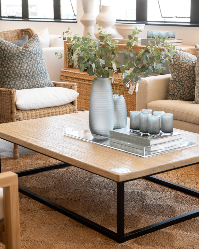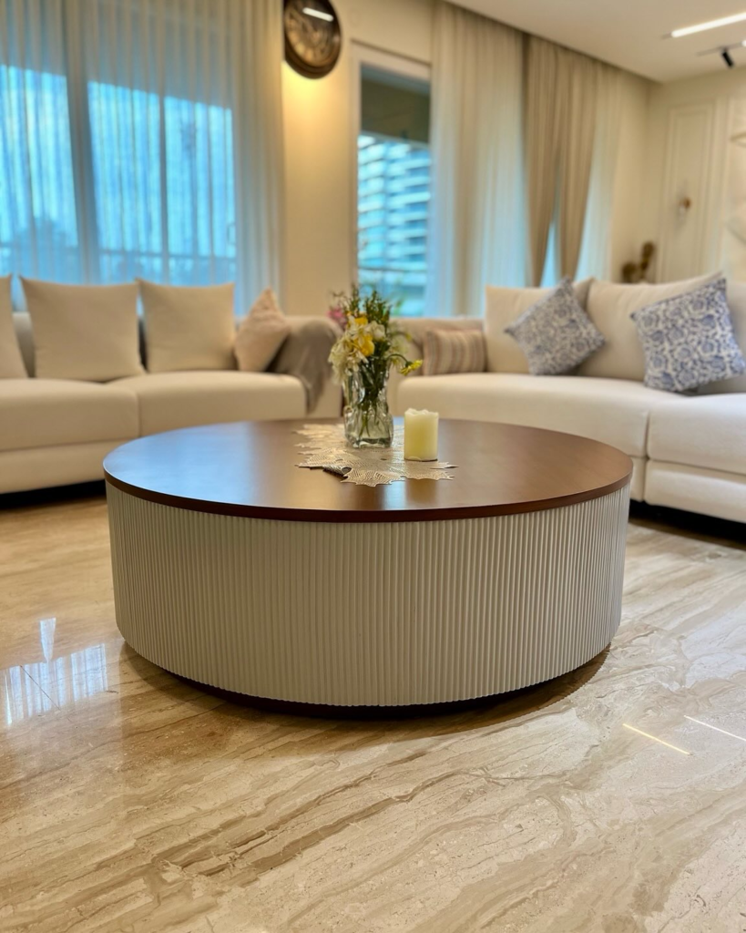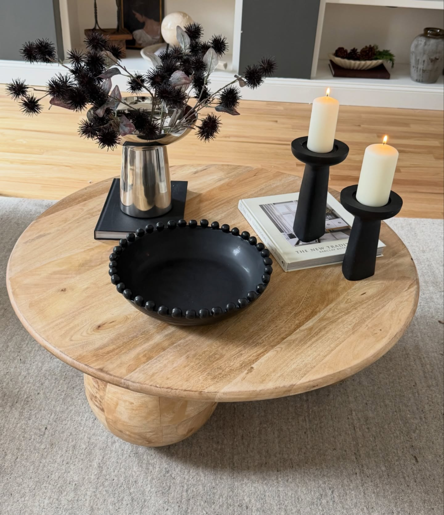 I opted for a mid-century wooden table with sleek lines, and it anchors my seating area beautifully.