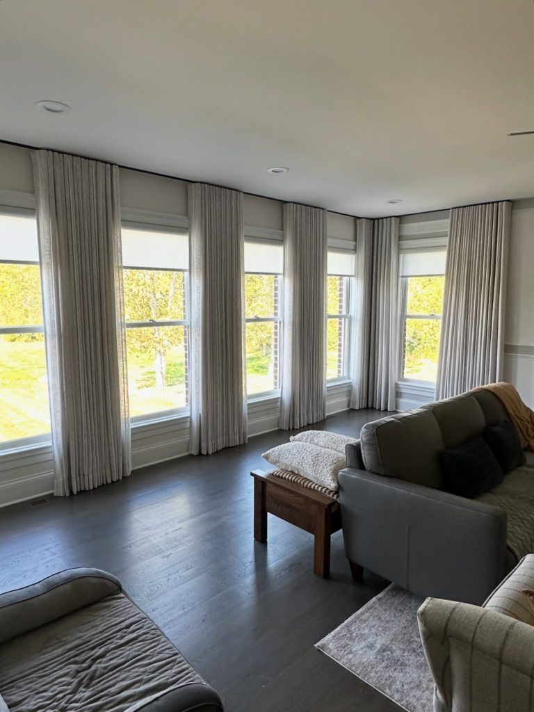 Blinds, shades, or curtains in classic fabrics last for years. I chose light-filtering linen shades, which allow natural light while maintaining privacy.