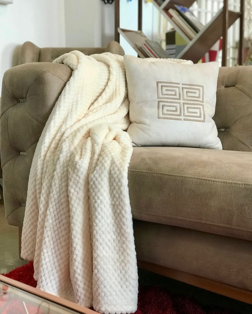 Textured blankets add warmth, softness, and an inviting feeling that never goes out of style.