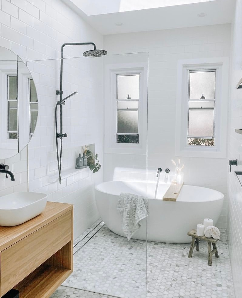 I recently experimented with a wet room style, where the shower isn’t enclosed by bulky doors. It instantly makes the bathroom feel larger.
