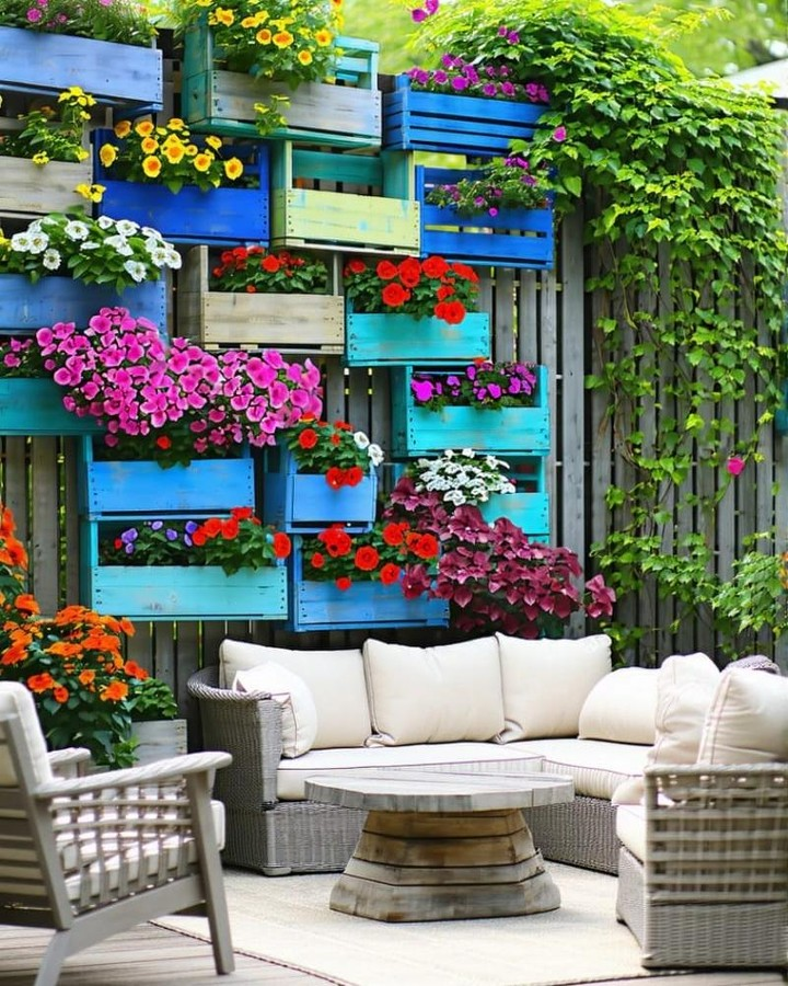 If you’re short on space, vertical gardens are a beautiful solution. I mounted wooden panels and attached small pots for flowers and herbs. It adds greenery without taking up floor space. You can customize the layout however you like. This idea works wonderfully for smaller patios or balconies. It makes your space feel lush and thoughtfully designed.