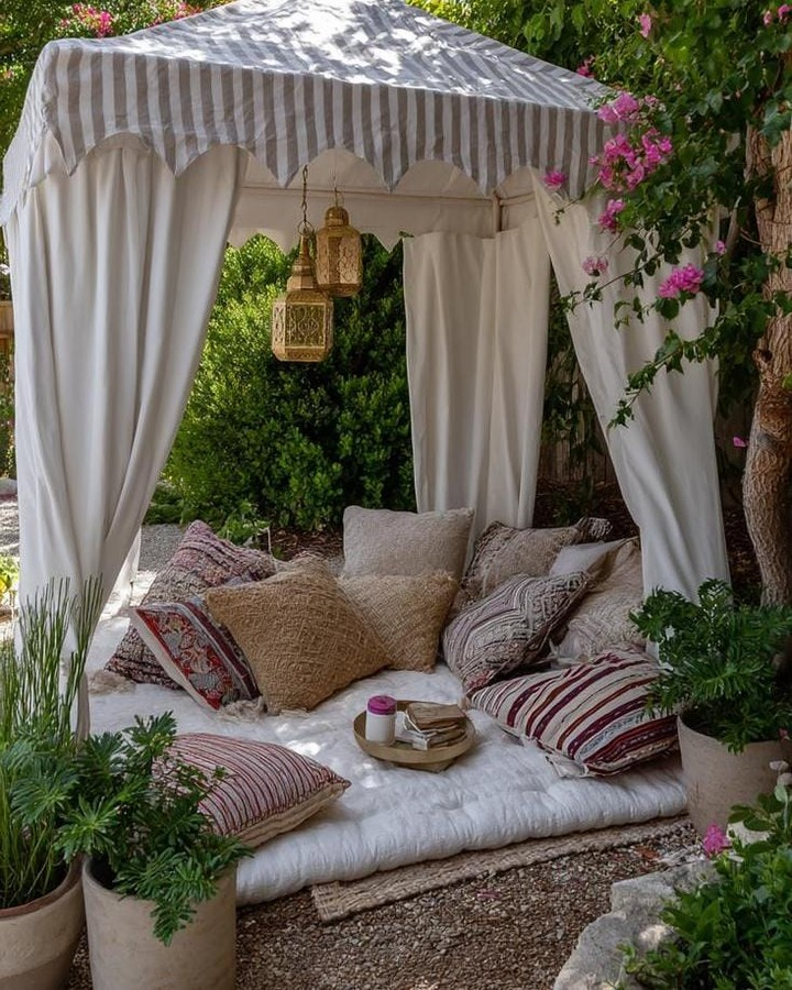 Creating a dining nook makes outdoor meals feel special. I set up a small table with comfortable chairs and simple décor. You don’t need a large space to make it work. Add candles or a centerpiece for charm. It turns everyday meals into mini celebrations. Dining outside feels refreshing and peaceful.