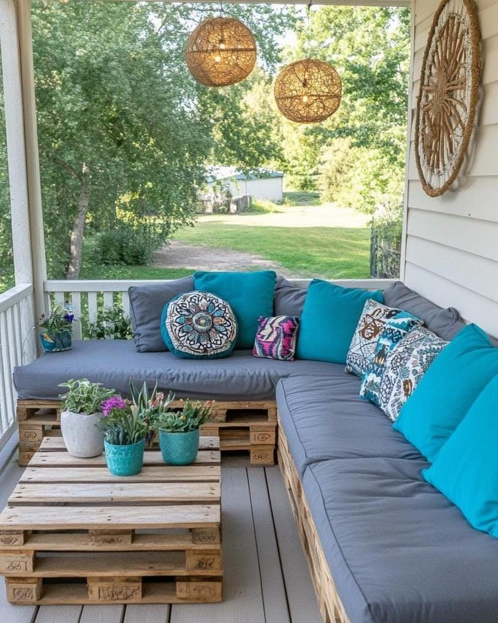 Pallet furniture is one of my favorite budget solutions. I built a simple pallet sofa with cushions, and it became the heart of my patio. You can sand, stain, or paint pallets to match your theme. Add thick, comfortable cushions to make it inviting. It’s sturdy, affordable, and customizable. Plus, there’s something special about sitting on furniture you built yourself.
