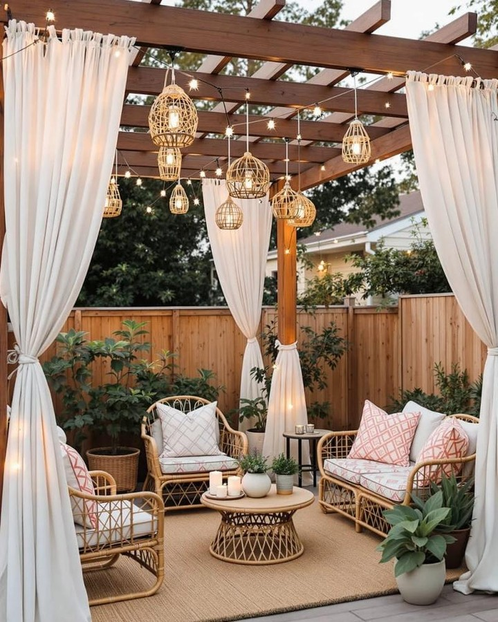 2. Pergola with Hanging Curtains