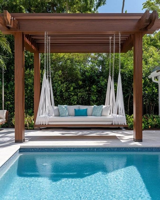 If you have a pool, this is such a luxury upgrade. A pergola near the pool gives you shade and a place to relax.