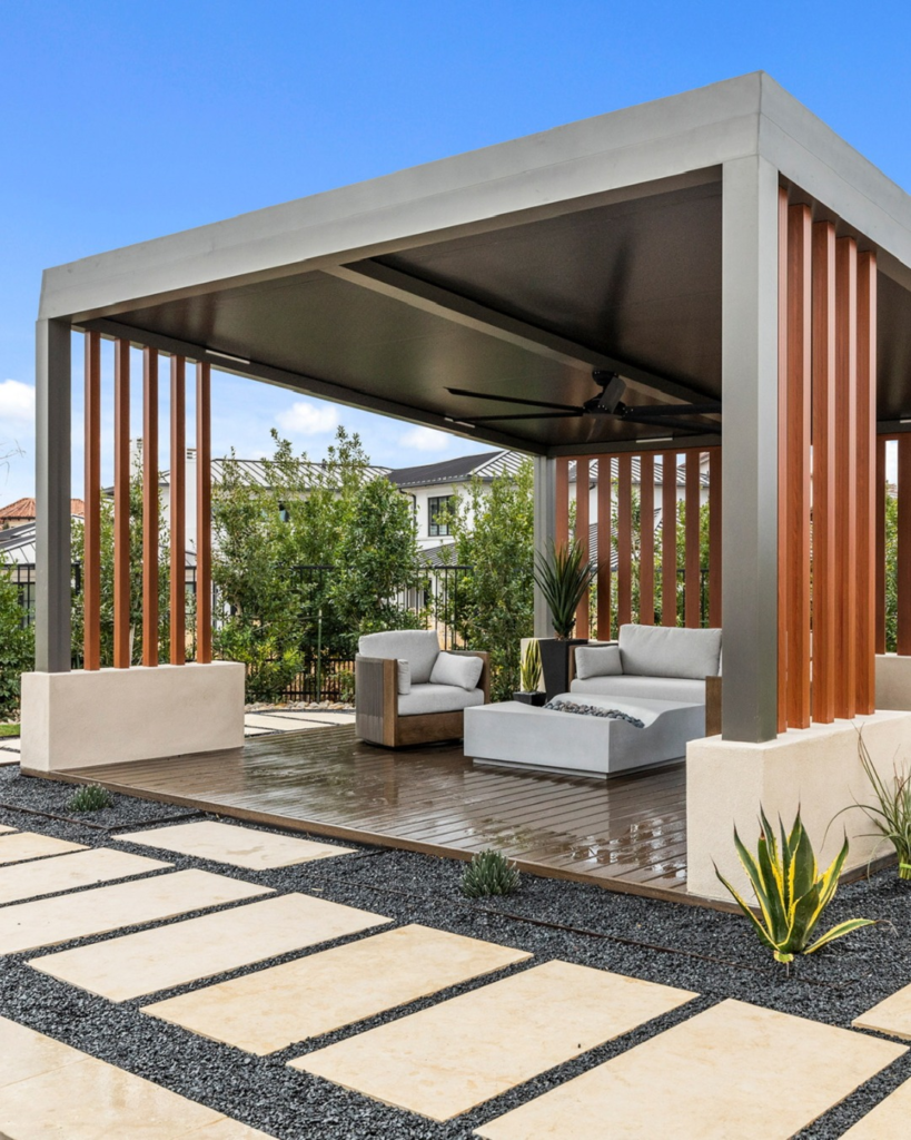 Not everyone loves rustic or floral styles, and that’s totally okay. A modern pergola with clean lines looks sleek and elegant.