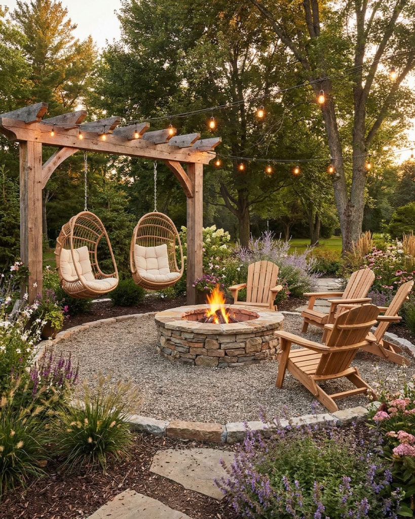 I started with the classic stone fire pit because it’s timeless. I used natural stones from my local garden center and arranged them in a circular pattern.