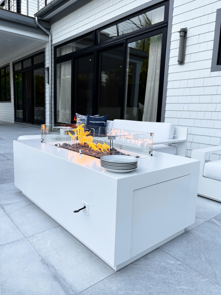 It’s sleek, wind-resistant, and visually stunning. The flicker of flames through glass adds an elegant touch that makes every evening feel special.