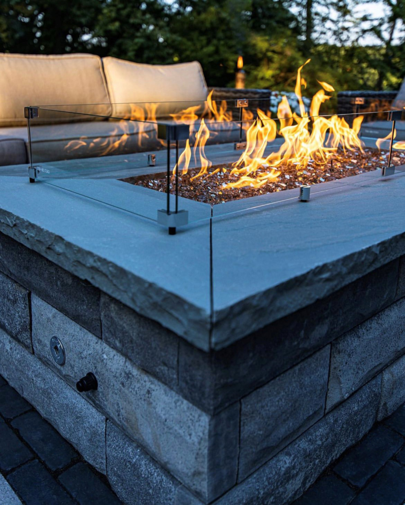 For a modern twist, I tried a glass fire pit. I surrounded a metal fire bowl with tempered glass panels.