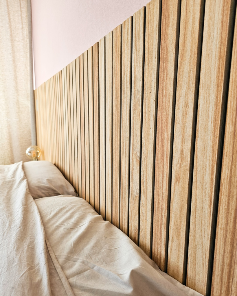 This was fun because it doubles as a pinboard. I attached cork panels to the wall behind my bed and now have a functional yet stylish headboard. You can pin notes, photos, or small decor items to personalize it daily.