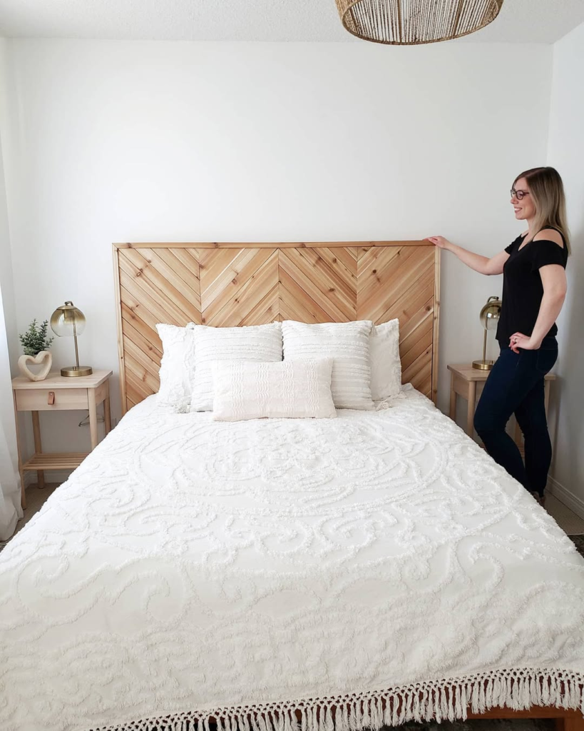 I used shiplap boards for a crisp, farmhouse aesthetic. I painted them white for a fresh look, and it instantly brightened the room. It’s a clean, simple design that works with almost any bedroom style.