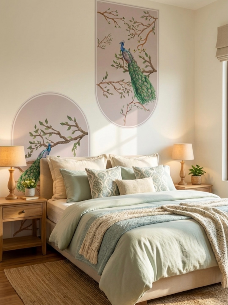 I tried using wall stickers shaped like a headboard for a quick, no-fuss project. It gave the illusion of a design without construction, and it’s easy to update whenever you want. A simple but surprisingly effective hack.