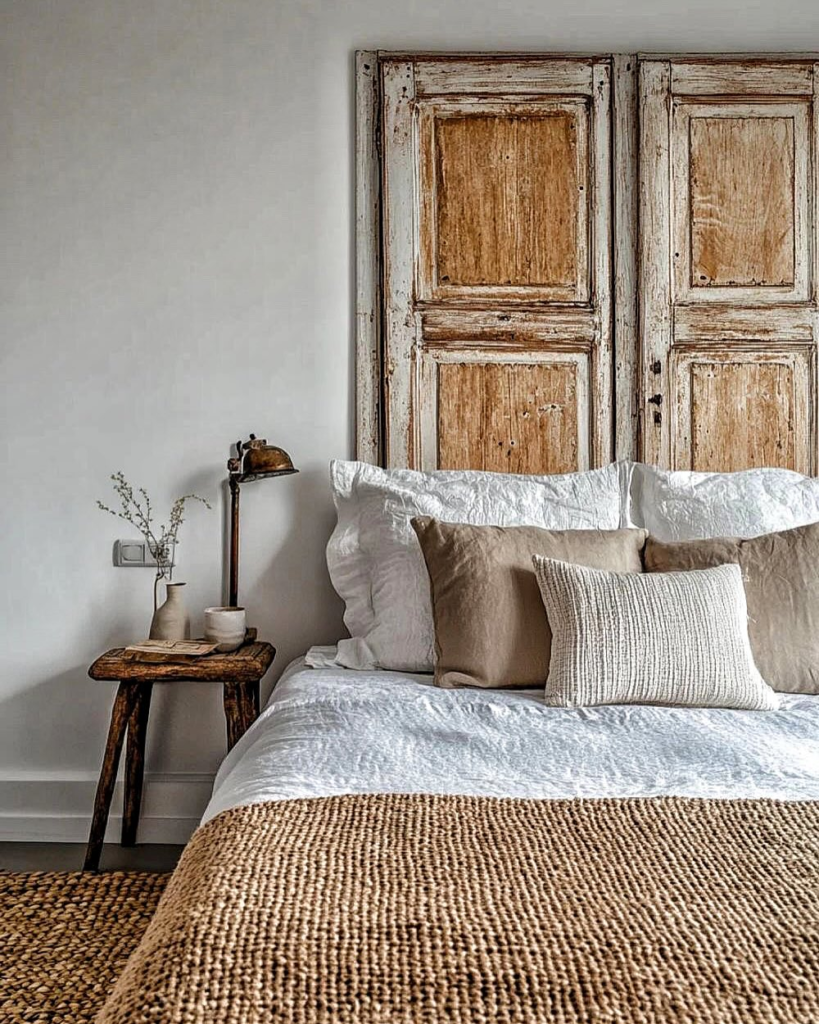 I repurposed an old door for a vintage-inspired headboard. It instantly became the centerpiece of the room, adding charm and height. Doors make beautiful, sturdy headboards with minimal effort.