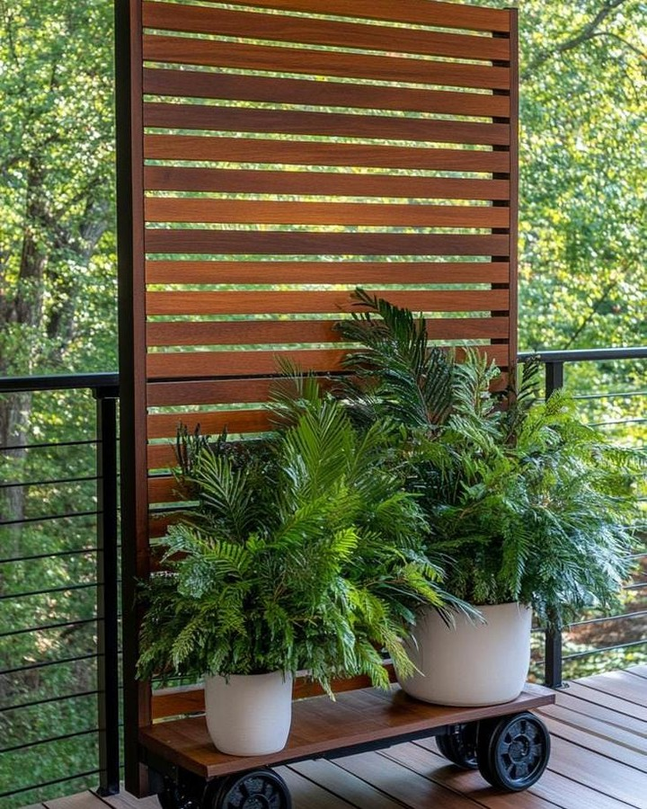 Sometimes you just want privacy. I used tall potted plants and climbing vines along the fence to create a natural screen. It feels softer than a solid wall. The greenery adds freshness and elegance. It turns your backyard into a peaceful retreat.