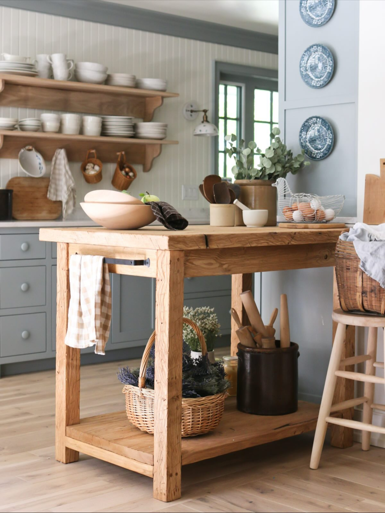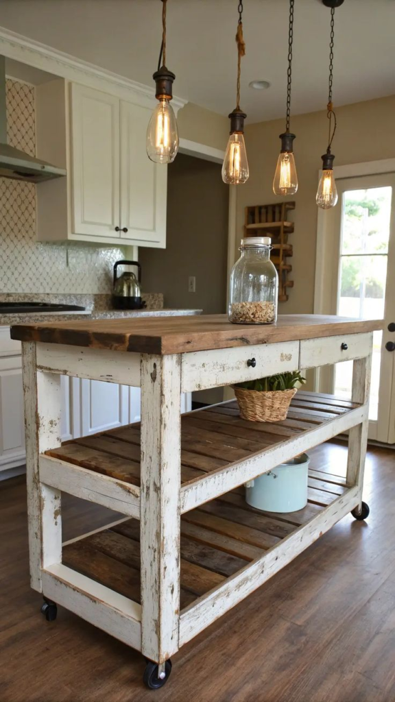 For a budget-friendly option, I built an island using reclaimed pallets. It was surprisingly easy and gave the kitchen a rustic, farmhouse feel. I sanded it down, added a protective finish, and now it’s sturdy enough for daily use. It’s also eco-friendly, which makes me feel good about the project.