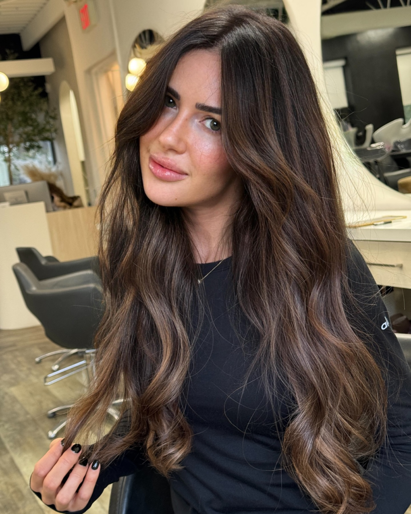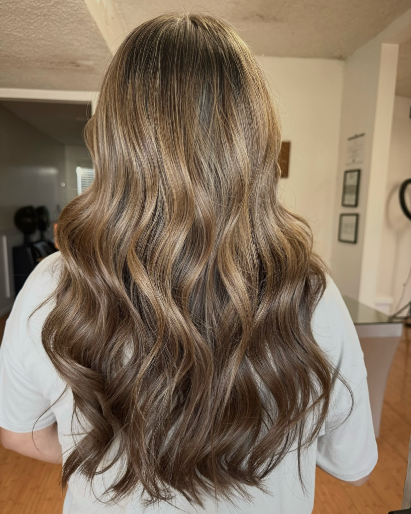 The balayage highlights catch the sun beautifully, and the waves make your hair feel full of life. This look is perfect for beach days or casual brunches.