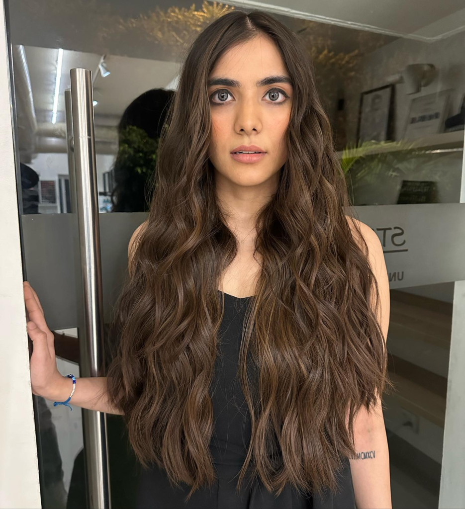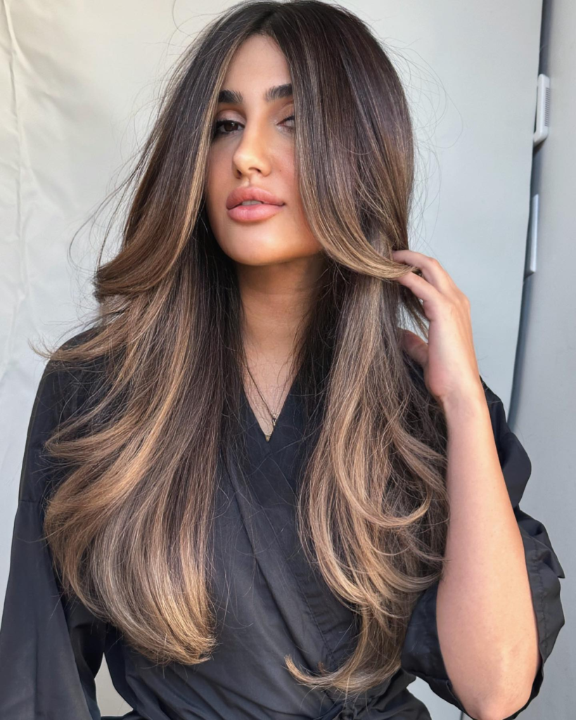 Glossy dark brown hair with layers looks effortlessly polished. I personally love the shine it gives, especially under summer sunlight.