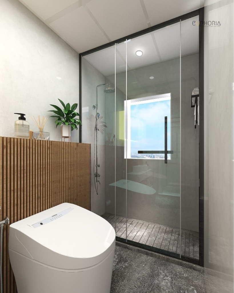 If your WC is part of a larger bathroom, glass partitions can help. They separate the space without blocking light.