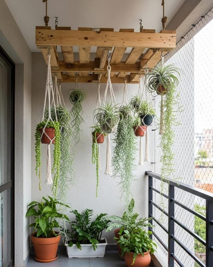 Space is always a challenge, right? That’s why vertical gardens are a game-changer. I installed a vertical wooden frame and filled it with small pots of ivy and succulents. It instantly makes the balcony look fuller and more organized.