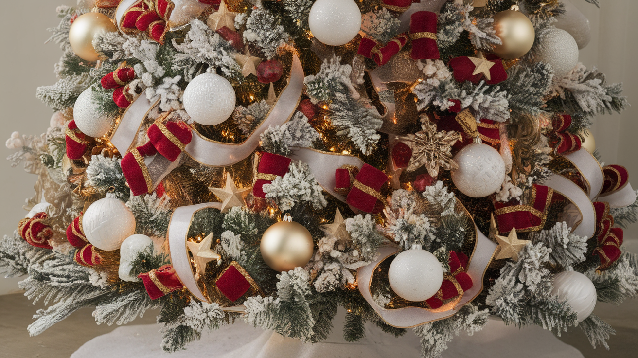 If you want your tree to look like it was plucked from a snowy forest, try the white wonderland theme. White ornaments, frosted branches, and silver accents create a wintry scene.