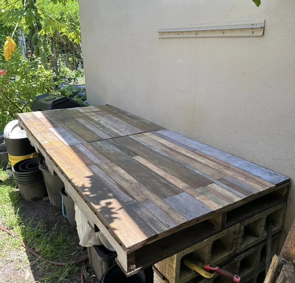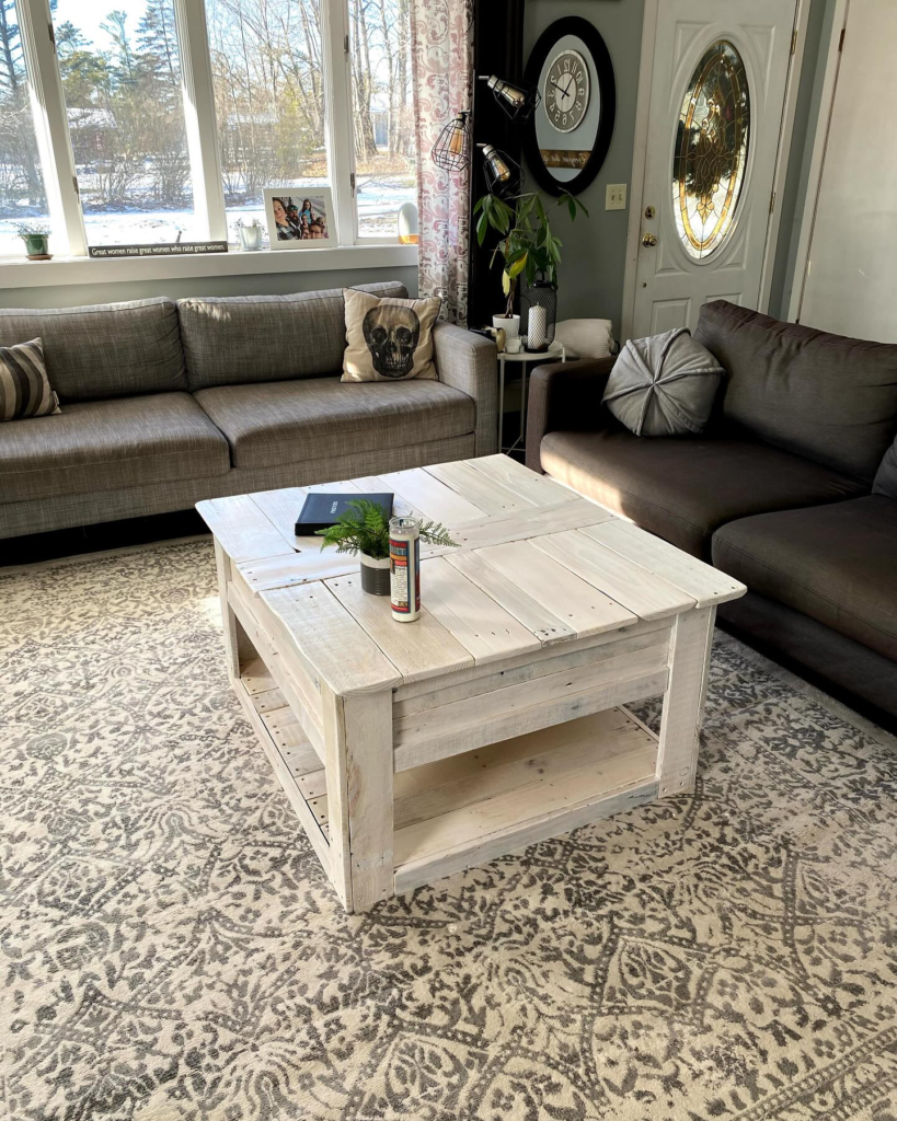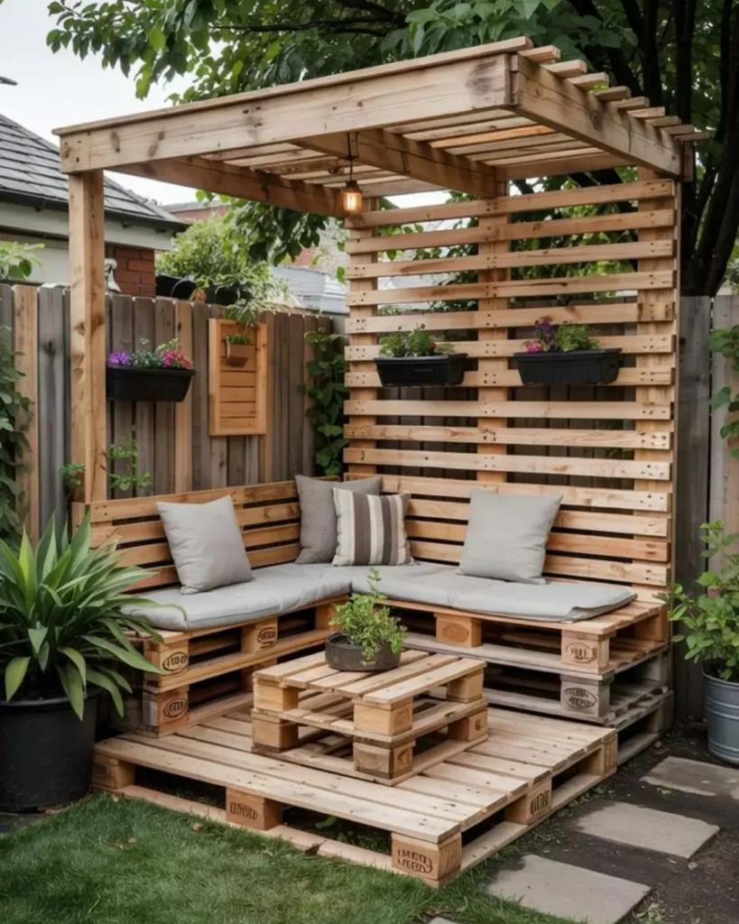 I repurposed pallets into a coffee table with hidden storage underneath. It’s great for keeping outdoor cushions, magazines, or garden tools neatly tucked away while still maintaining a stylish look.