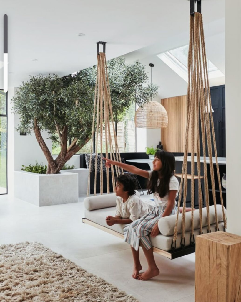 A swing adds so much charm and fun to any outdoor area. I built one using a strong wooden plank and rope secured to a sturdy tree branch. It’s one of those pieces that immediately makes the space feel playful. Sitting on it with a cup of tea became my favorite weekend ritual.