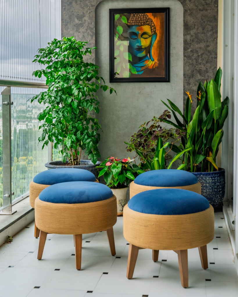 I wanted a footrest that doubles as extra seating. Wrapping an old stool with thick outdoor rope turned it into a nautical-style ottoman. It took some patience to get the rope tight and even, but now it’s a conversation piece whenever guests visit.