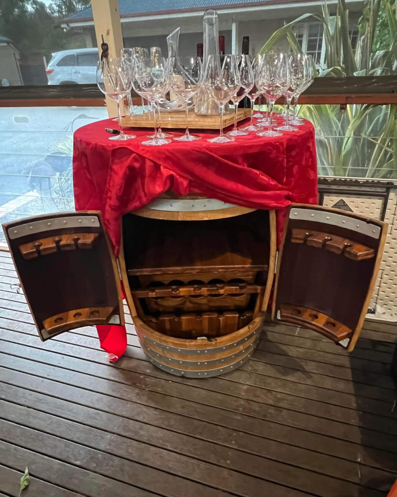 I had an old wine barrel, and instead of tossing it, I converted it into a side table by sanding it and adding a glass top. It’s rustic, sturdy, and looks elegant next to my lounge chairs. Plus, it always sparks conversations!