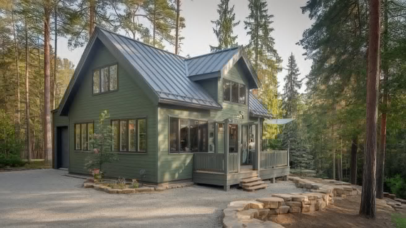 Try moss or olive green siding with cedar or walnut wood details for a balanced, earthy palette that feels both cozy and upscale.
