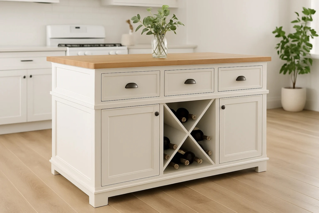 I appreciate this style when life feels chaotic. It’s easy to clean and visually relaxing. If you prefer modern, clutter-free spaces, this island keeps things simple and elegant.