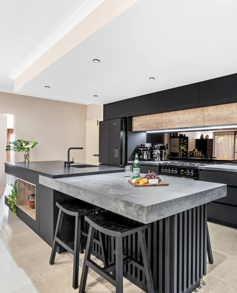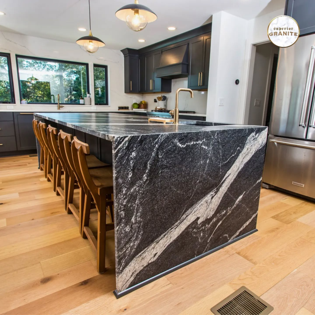 It’s perfect if you want your kitchen to feel stylish and elegant. Even simple materials look expensive with a waterfall edge. It’s more about visual impact than function, but wow, it works.
