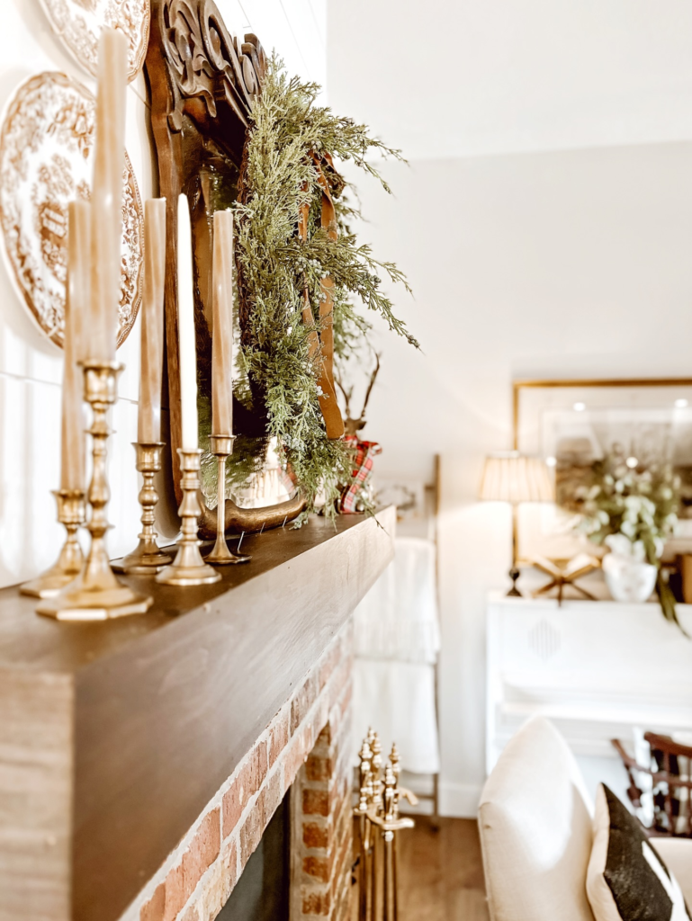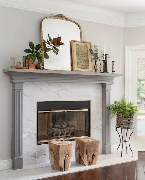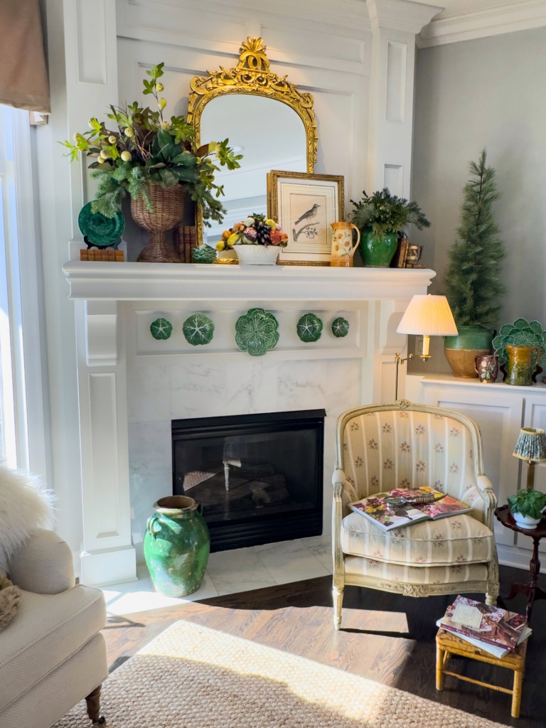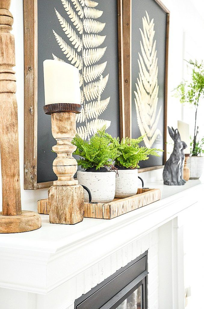 I usually pick a combination of heights and textures to make the display dynamic. It’s amazing how much a few green plants can transform the entire mantel and make the room feel fresher.
